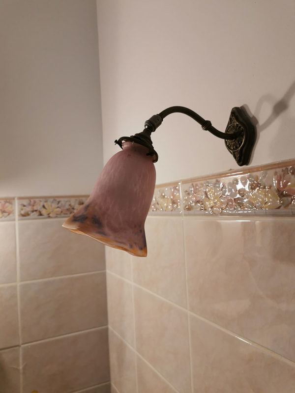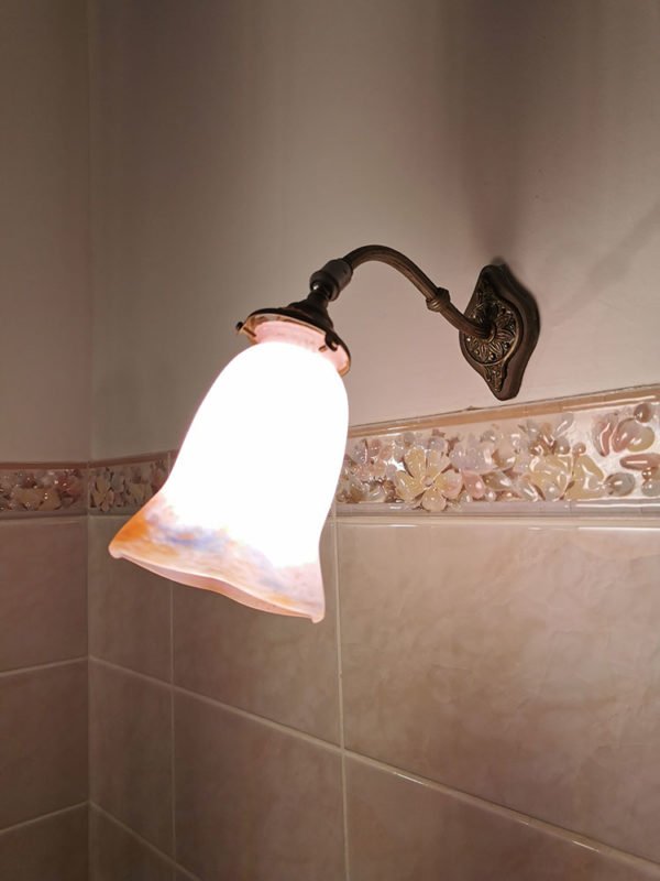 Applique avec abat-jour dépareillé – verre soufflé teinté rose – style Art nouveau – signé Mulat Cyatl (?)